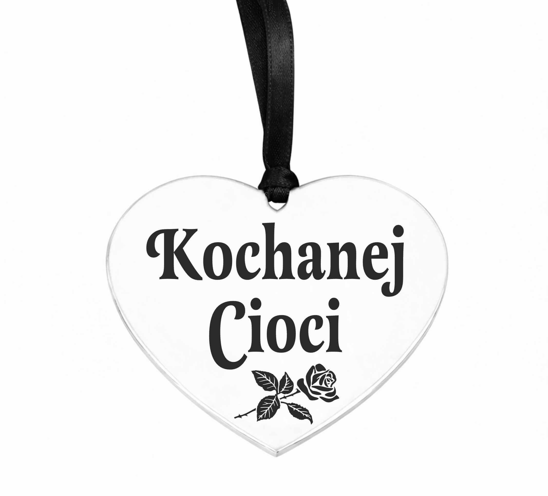 Zawieszka na znicz - serce, bezbarwna z czarnym grawerem, dla Kochanej Cioci, personalizowana dekoracja nagrobna