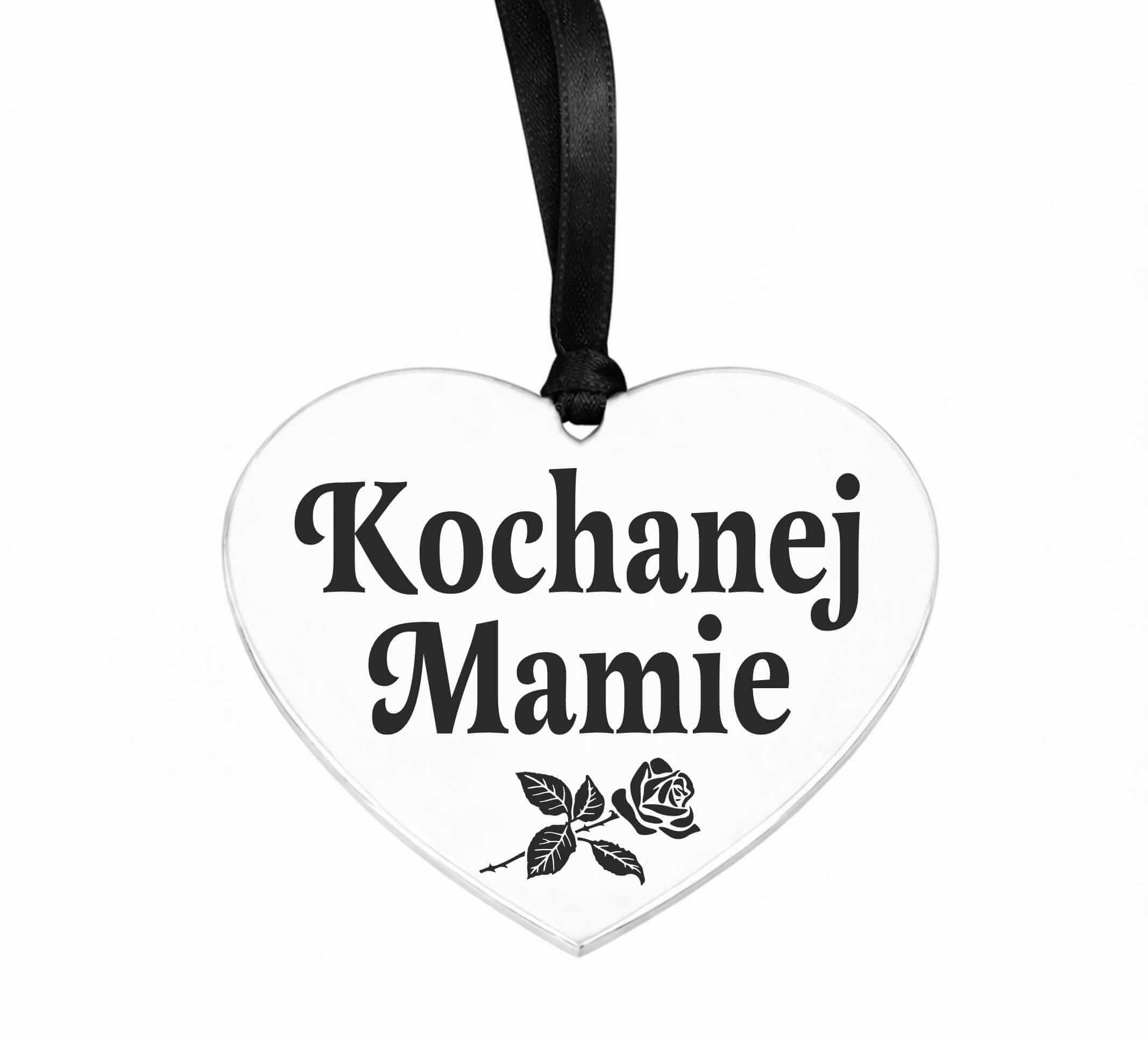 Zawieszka na znicz - serce, bezbarwna z czarnym grawerem, dla Kochanej Mamy, personalizowana dekoracja nagrobna
