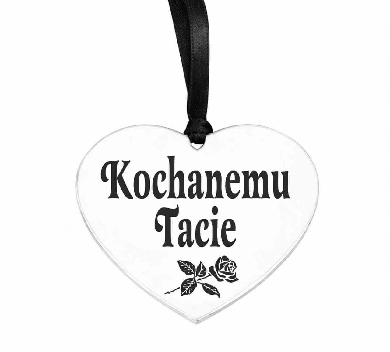 Zawieszka na znicz - serce, bezbarwna z czarnym grawerem, dla Kochanego Taty, personalizowana dekoracja nagrobna