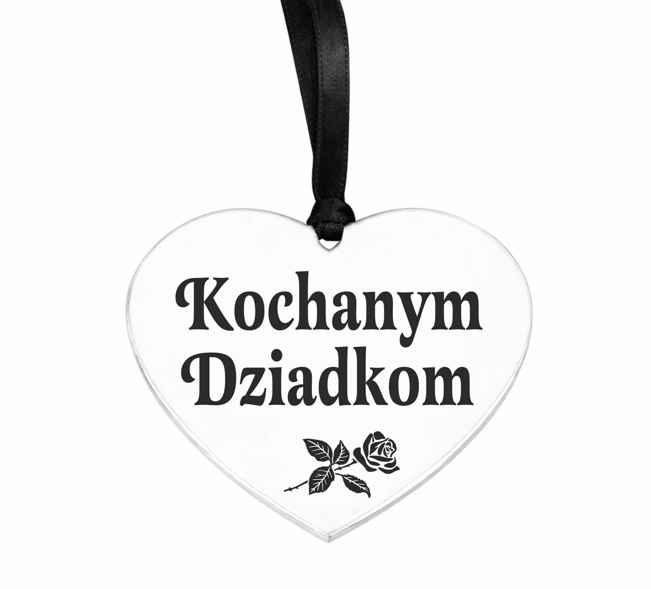 Zawieszka na znicz - serce, bezbarwna z czarnym grawerem, dla Kochanego Dziadka, personalizowana dekoracja nagrobna