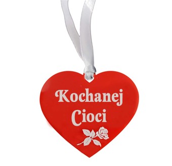 Zawieszka na znicz - serce, czerwona z białym grawerem, dla Kochanej Cioci, personalizowana dekoracja nagrobna