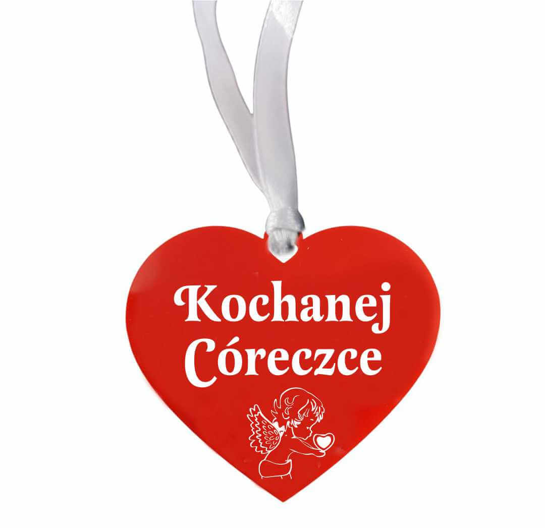 Zawieszka na znicz - serce, czerwona z białym grawerem, dla Kochanej Córeczce, personalizowana dekoracja nagrobna