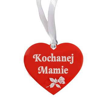 Zawieszka na znicz - serce, czerwona z białym grawerem, dla Kochanej Mamy, personalizowana dekoracja nagrobna