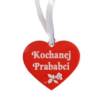Zawieszka na znicz - serce, czerwona z białym grawerem, dla Kochanej Prababci, personalizowana dekoracja nagrobna
