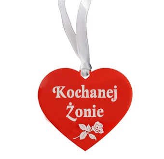 Zawieszka na znicz - serce, czerwona z białym grawerem, dla Kochanej Żony, personalizowana dekoracja nagrobna
