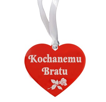 Zawieszka na znicz - serce, czerwona z białym grawerem, dla Kochanego Brata, personalizowana dekoracja nagrobna
