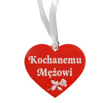 Zawieszka na znicz - serce, czerwona z białym grawerem, dla Kochanego Męża, personalizowana dekoracja nagrobna