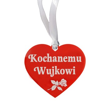 Zawieszka na znicz - serce, czerwona z białym grawerem, dla Kochanego Wujka, personalizowana dekoracja nagrobna
