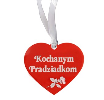 Zawieszka na znicz - serce, czerwona z białym grawerem, dla Kochanego Pradziadka, personalizowana dekoracja nagrobna