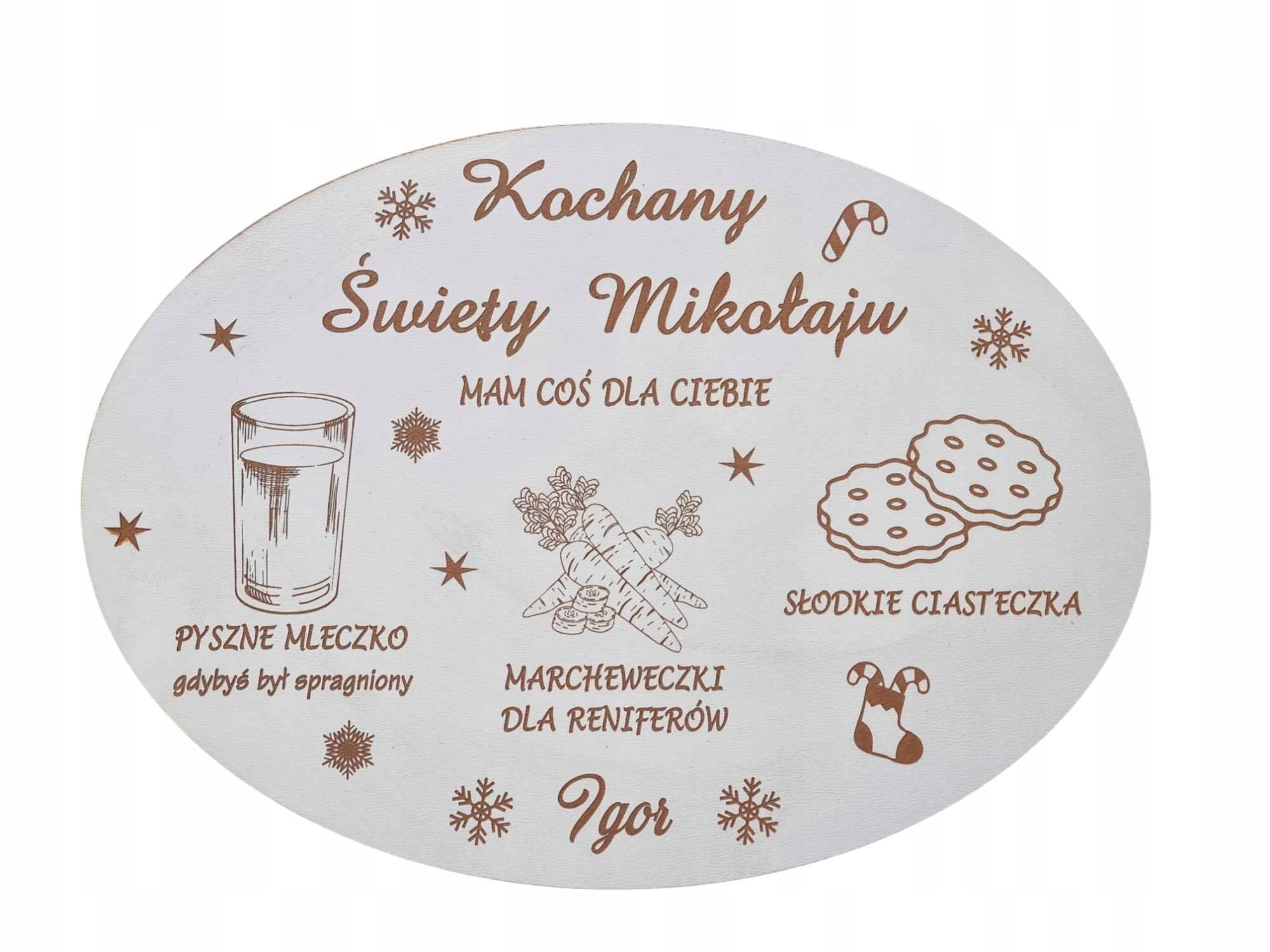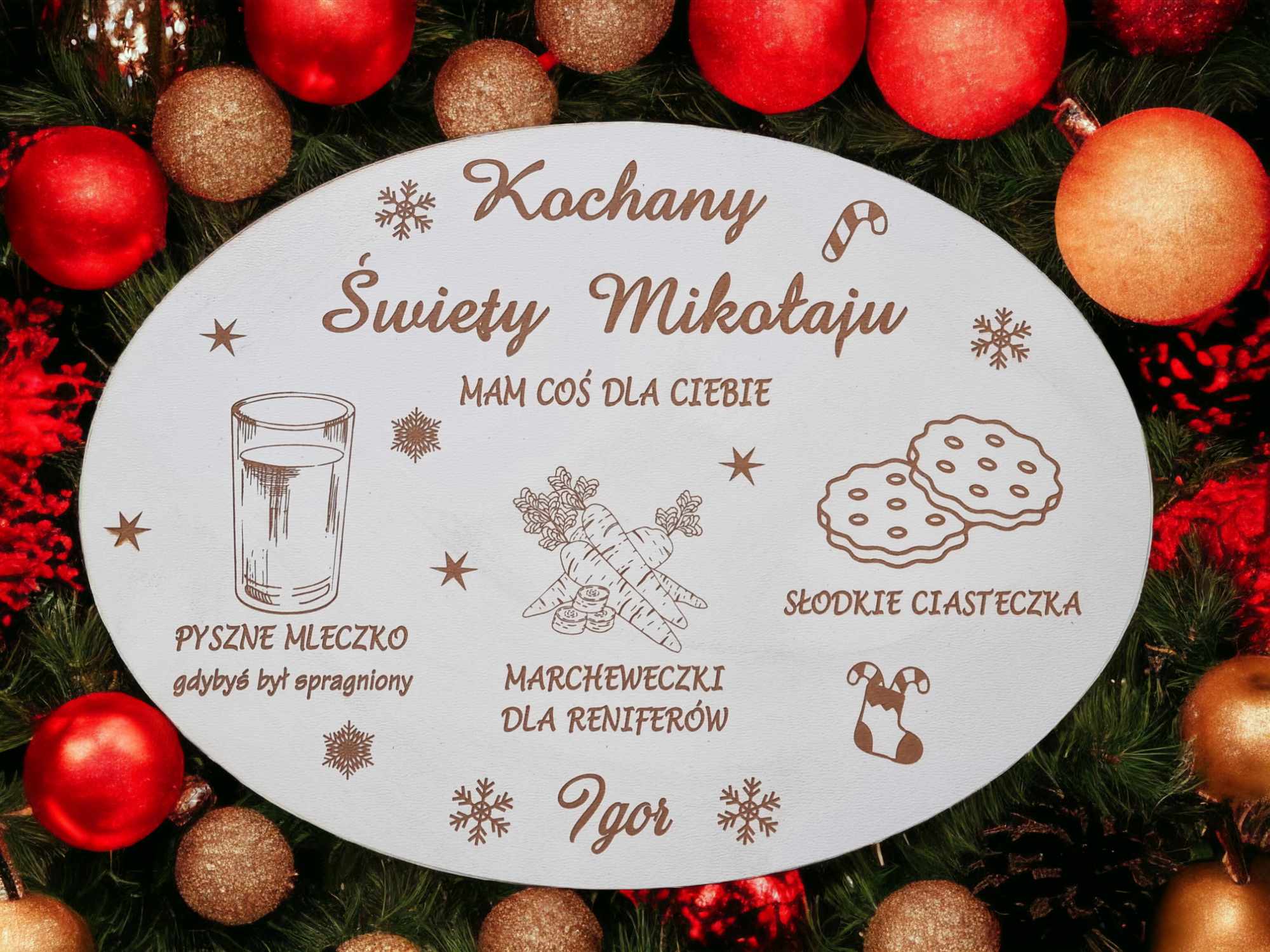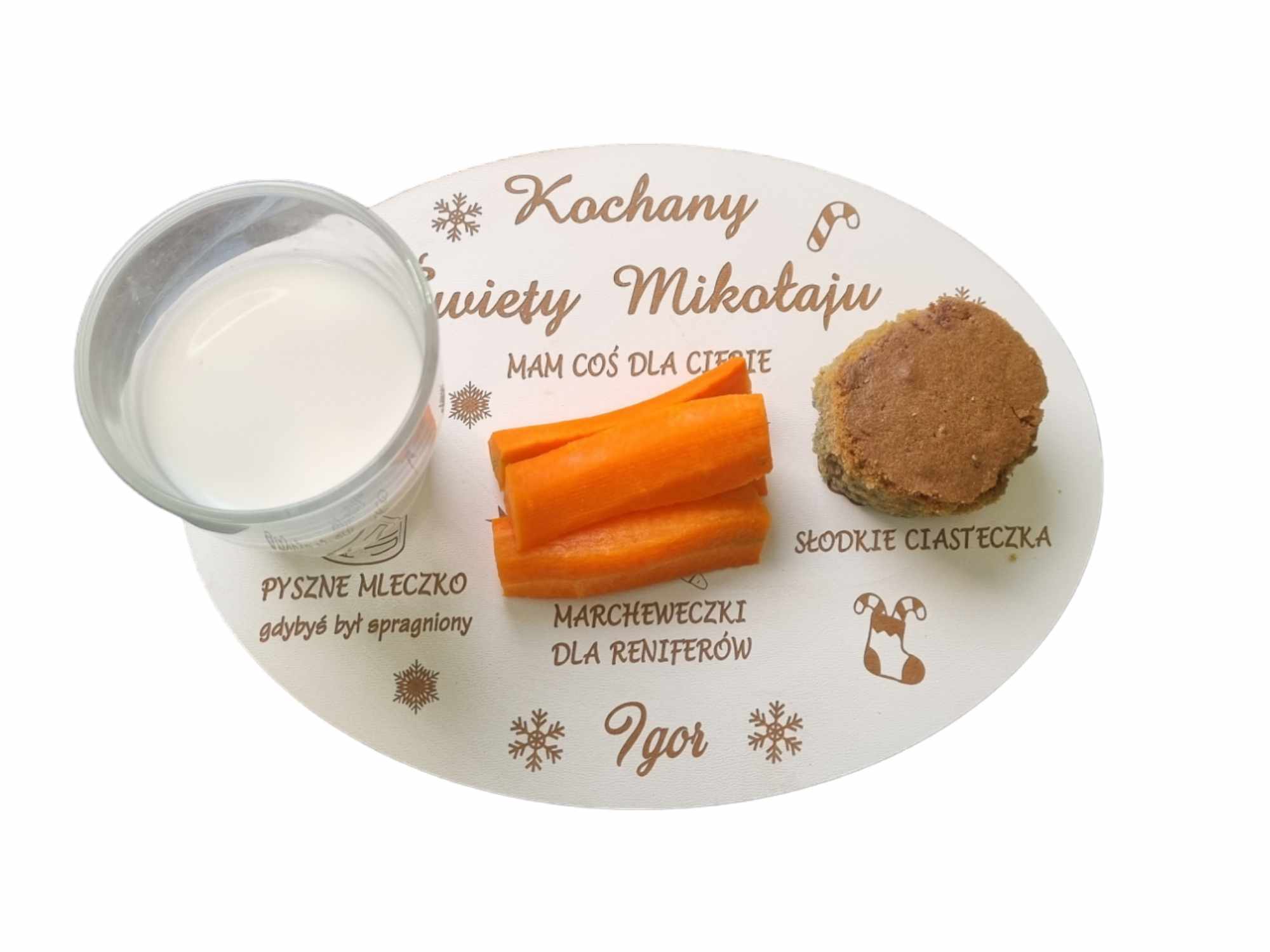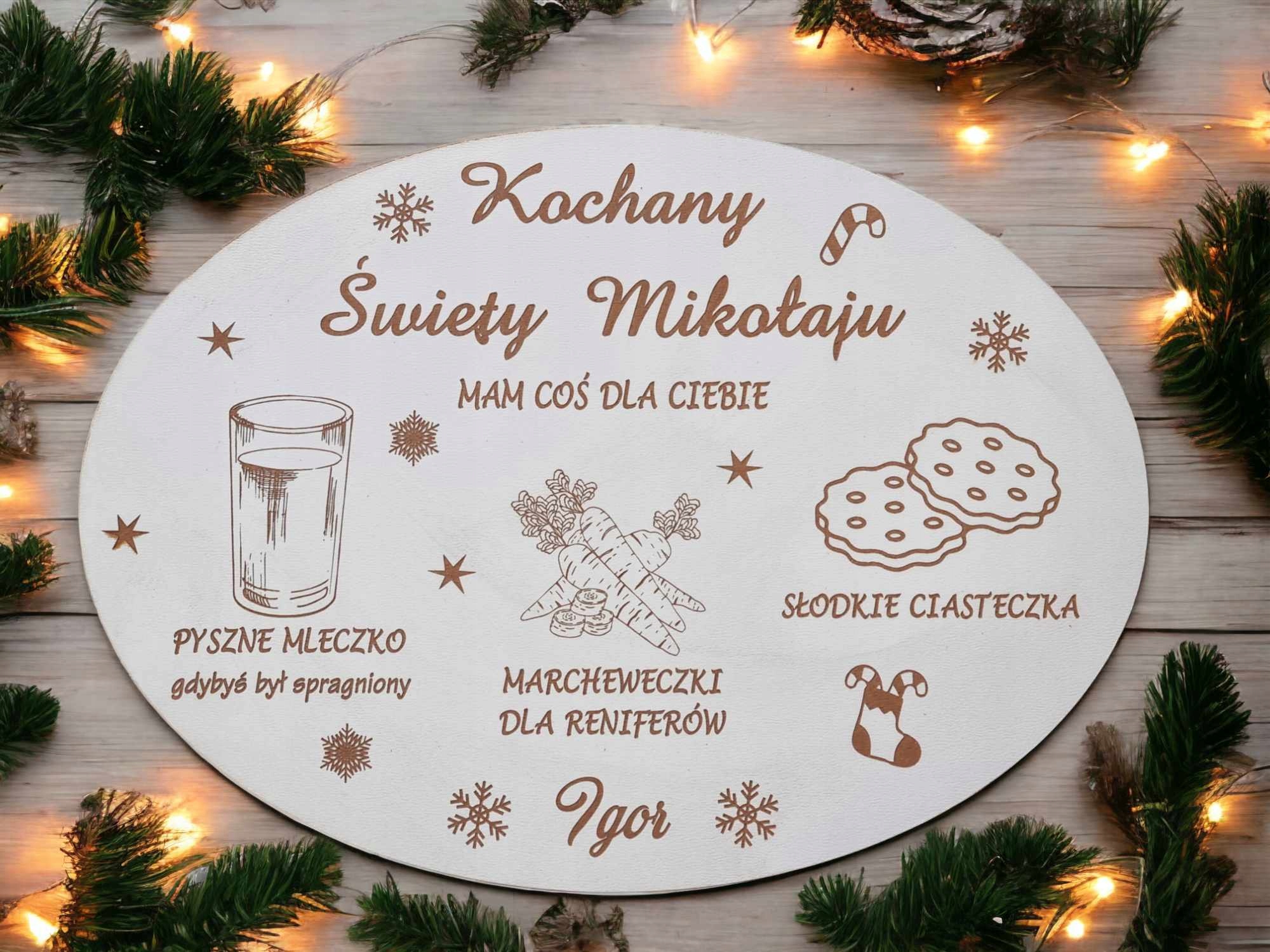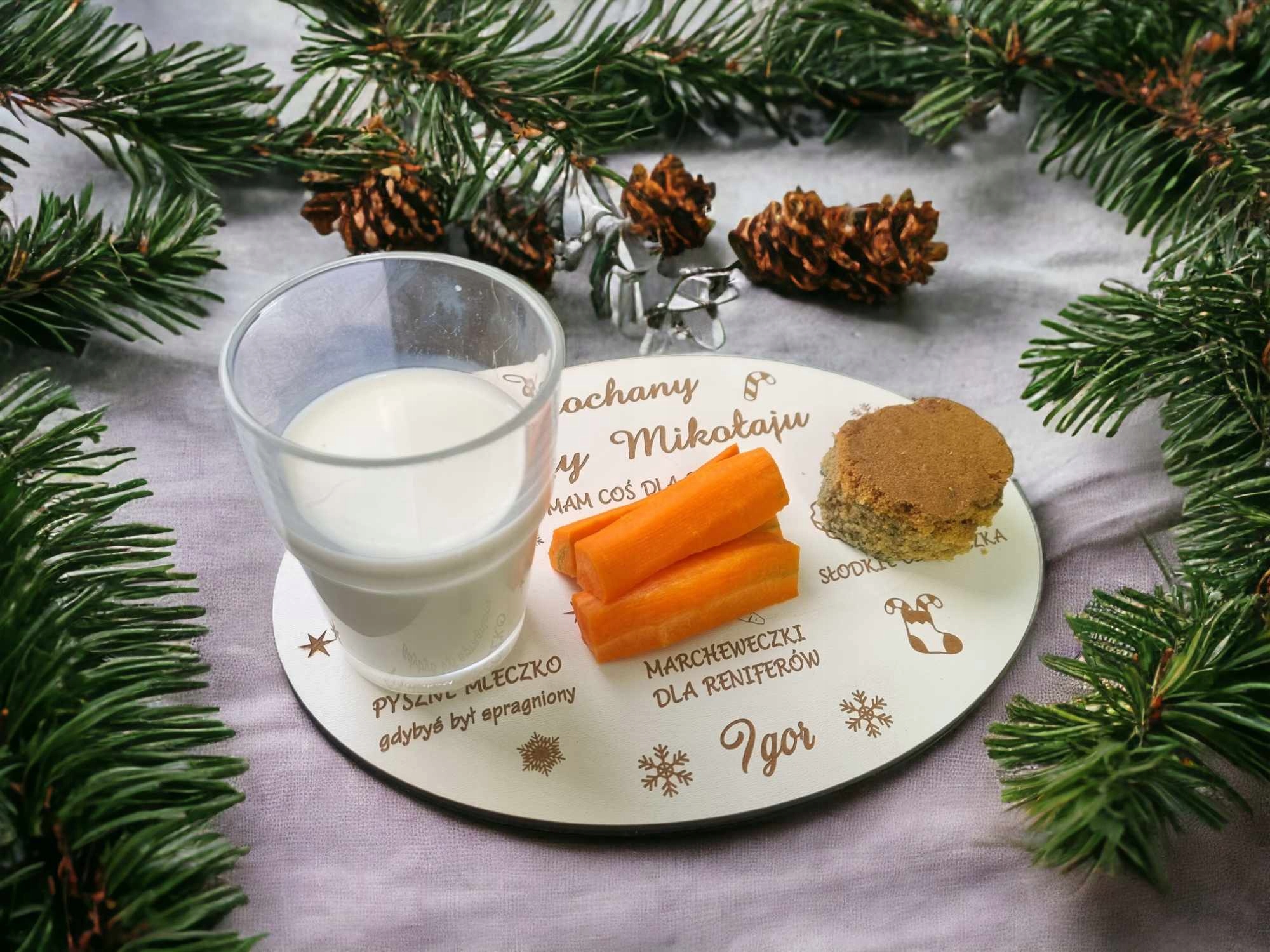 Drewniany talerzyk z miejscem na mleczko, ciasteczka i marchewki dla Reniferów!