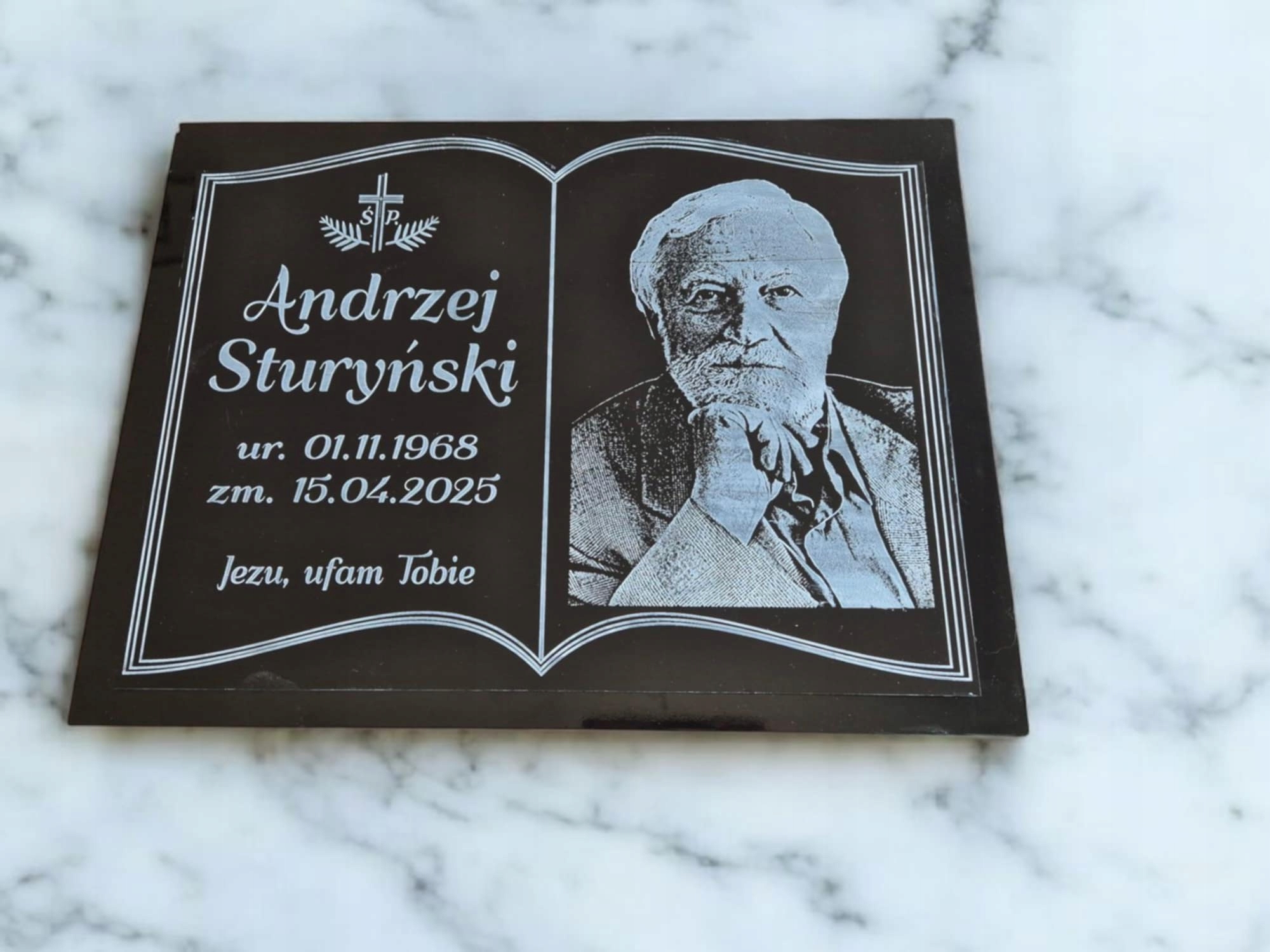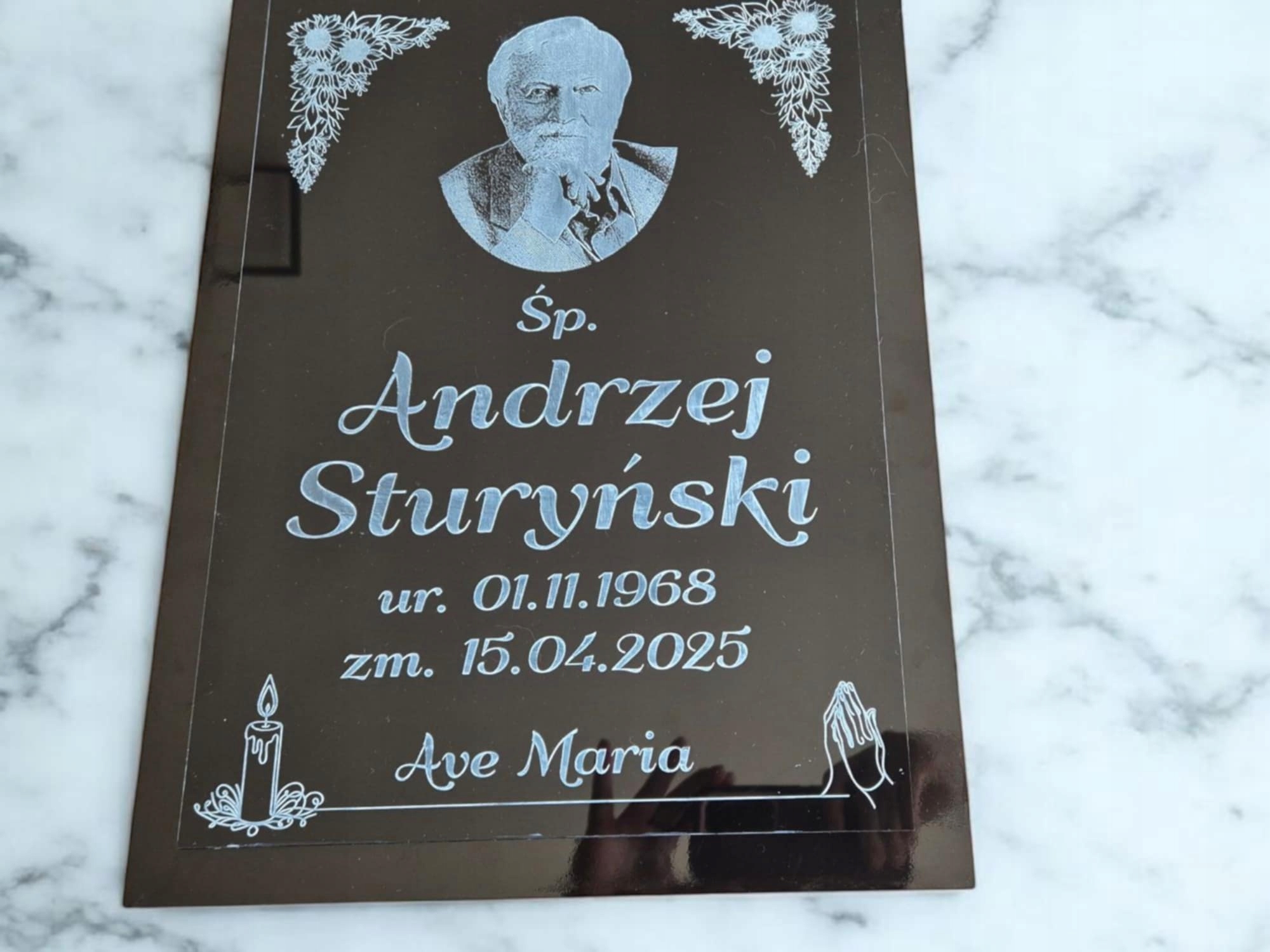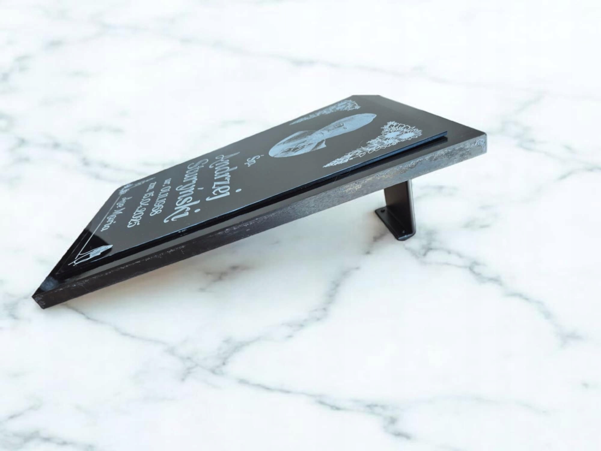 Tabliczka nagrobna z aglomarmuru i płyty akrylowej 30x40 cm – z nóżką i klejem montażowym