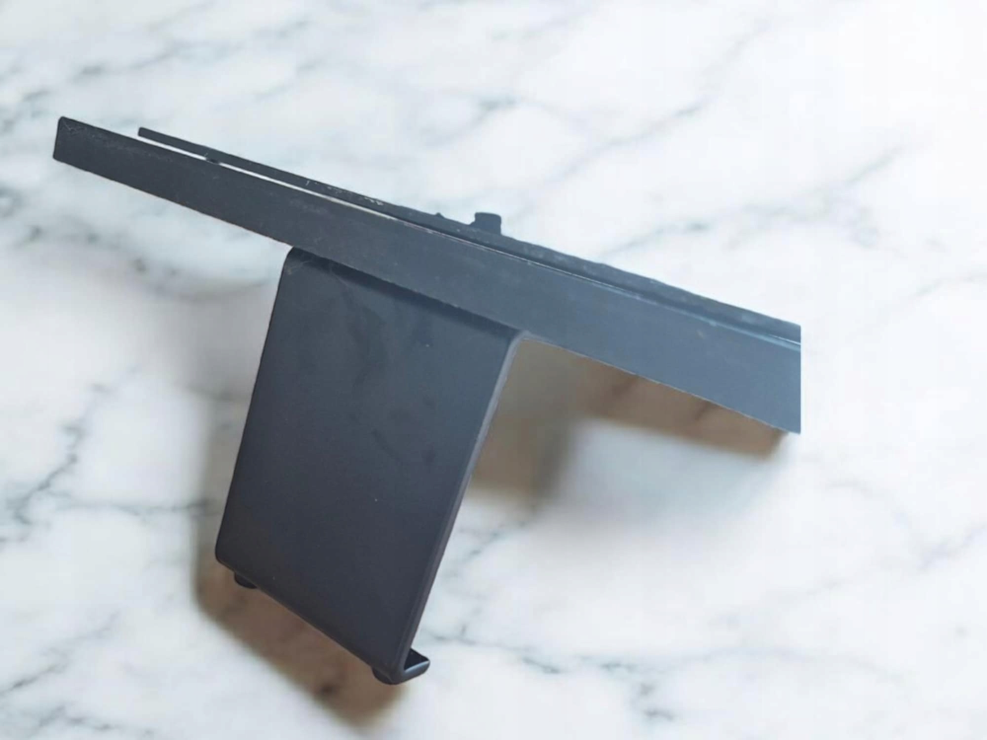 W zestawie znajduje się nóżka montażowa, którą można zamocować w dowolnym miejscu z tyłu tabliczki, co pozwala uzyskać wybrany kąt nachylenia – idealne dopasowanie do miejsca i preferencji wizualnych.
