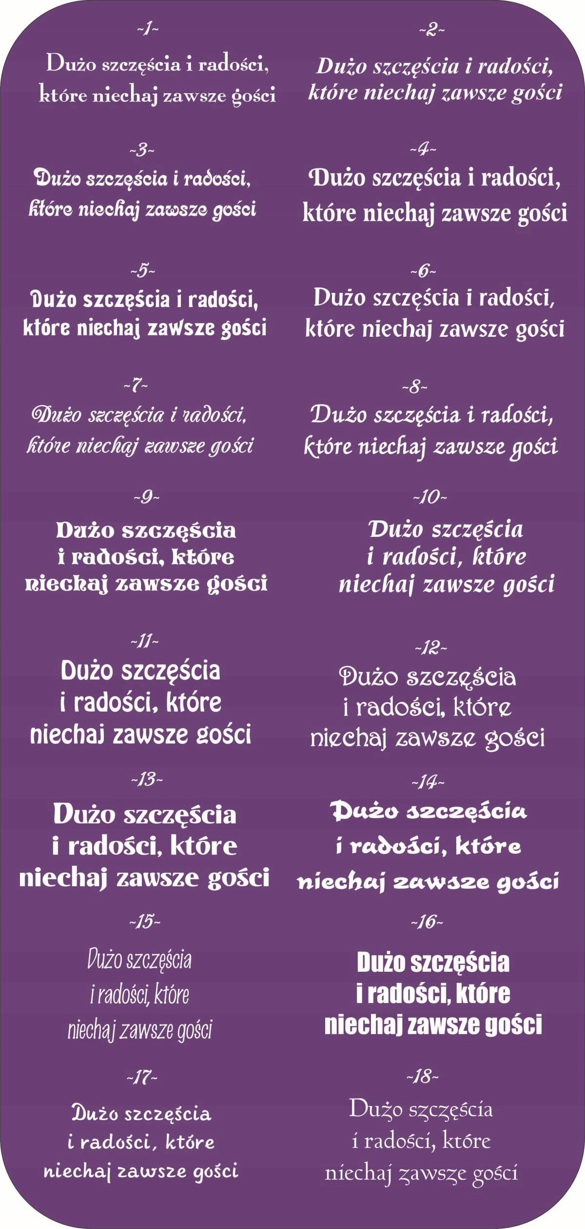 - tekst, który ma być wygrawerowany na statuetce, które podane są poniżej lub przesłanie własnej propozycji tekstu.