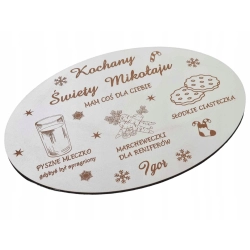 Drewniany Talerzyk dla MIKOŁAJA Tacka Ozdobna na Mleko Grawer imion 23cm