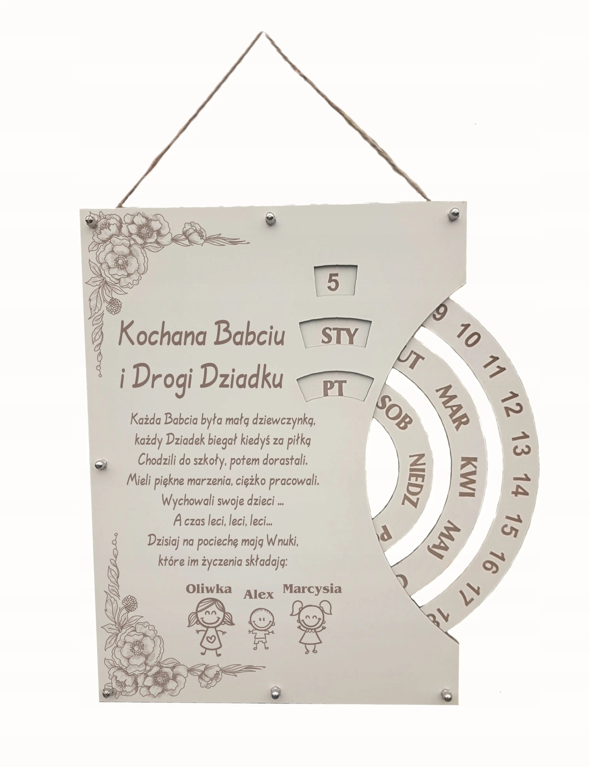 kalendarz wieczny personalizowany na DZIEŃ BABCI I DZIADKA, + grawer
