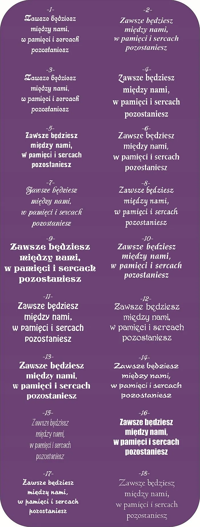 PONIŻEJ PRZEDSTAWIAMY PRZYKŁADY CZCIONEK