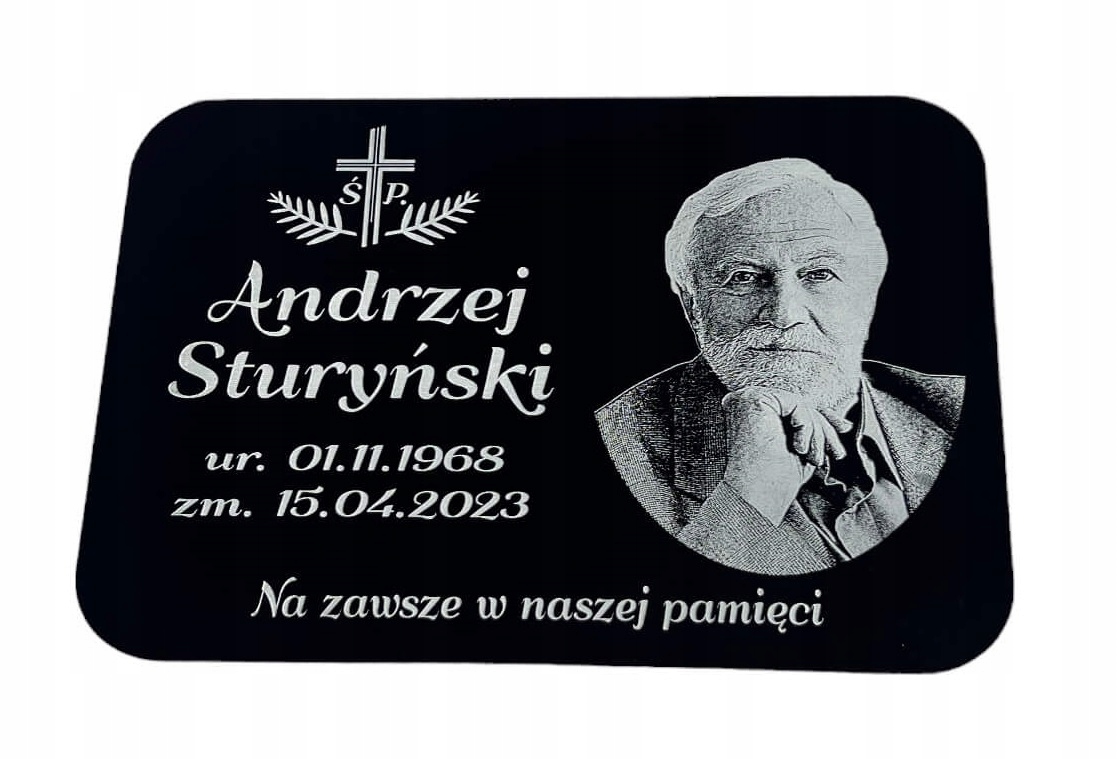 Tabliczka nagrobna ze zdjęciem 25×20 cm - czarna, akrylowa, grawerowana
