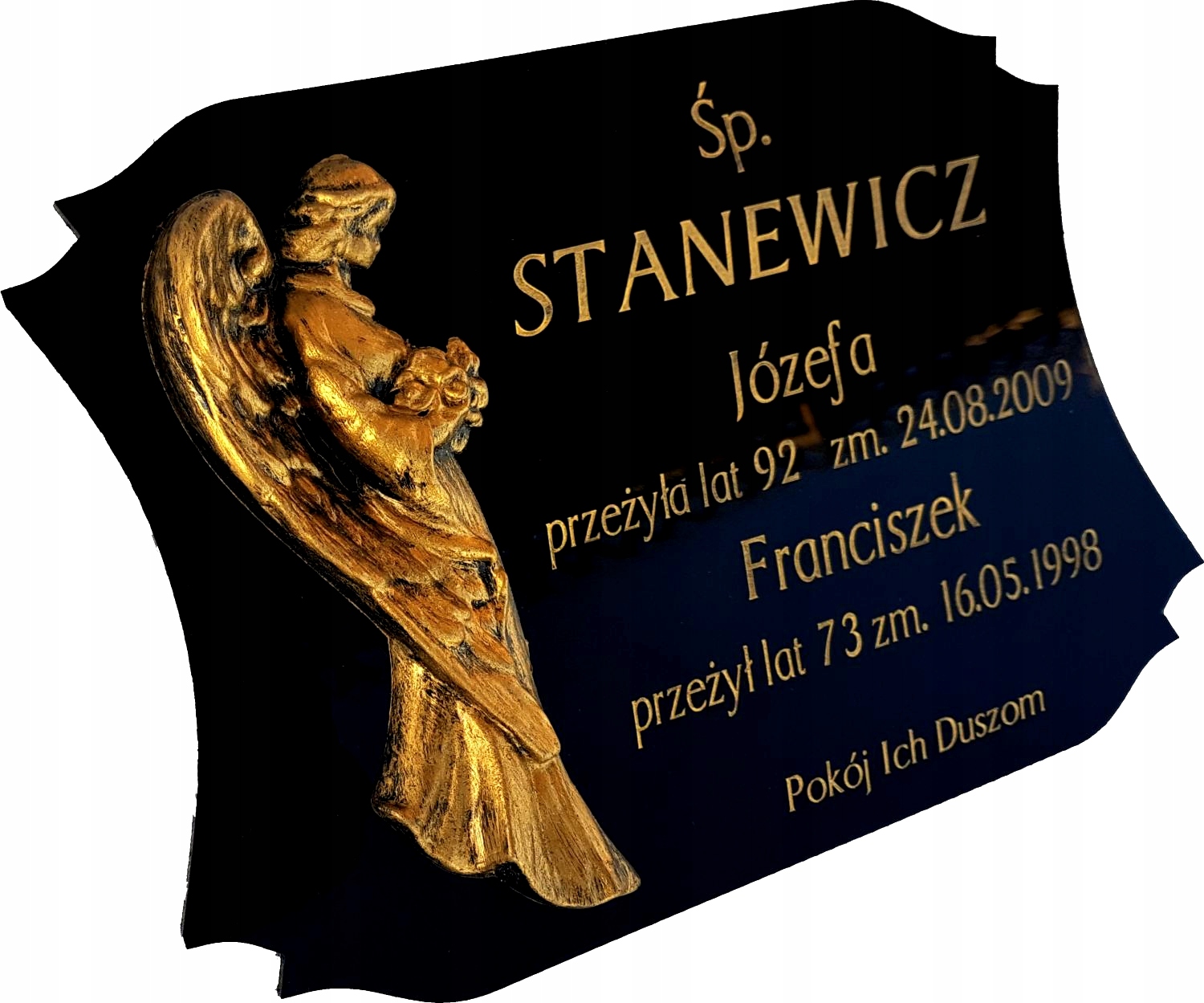 Tabliczka nagrobna z czarnego szkła akrylowego z grawerem – personalizowana, odporna na warunki atmosferyczne