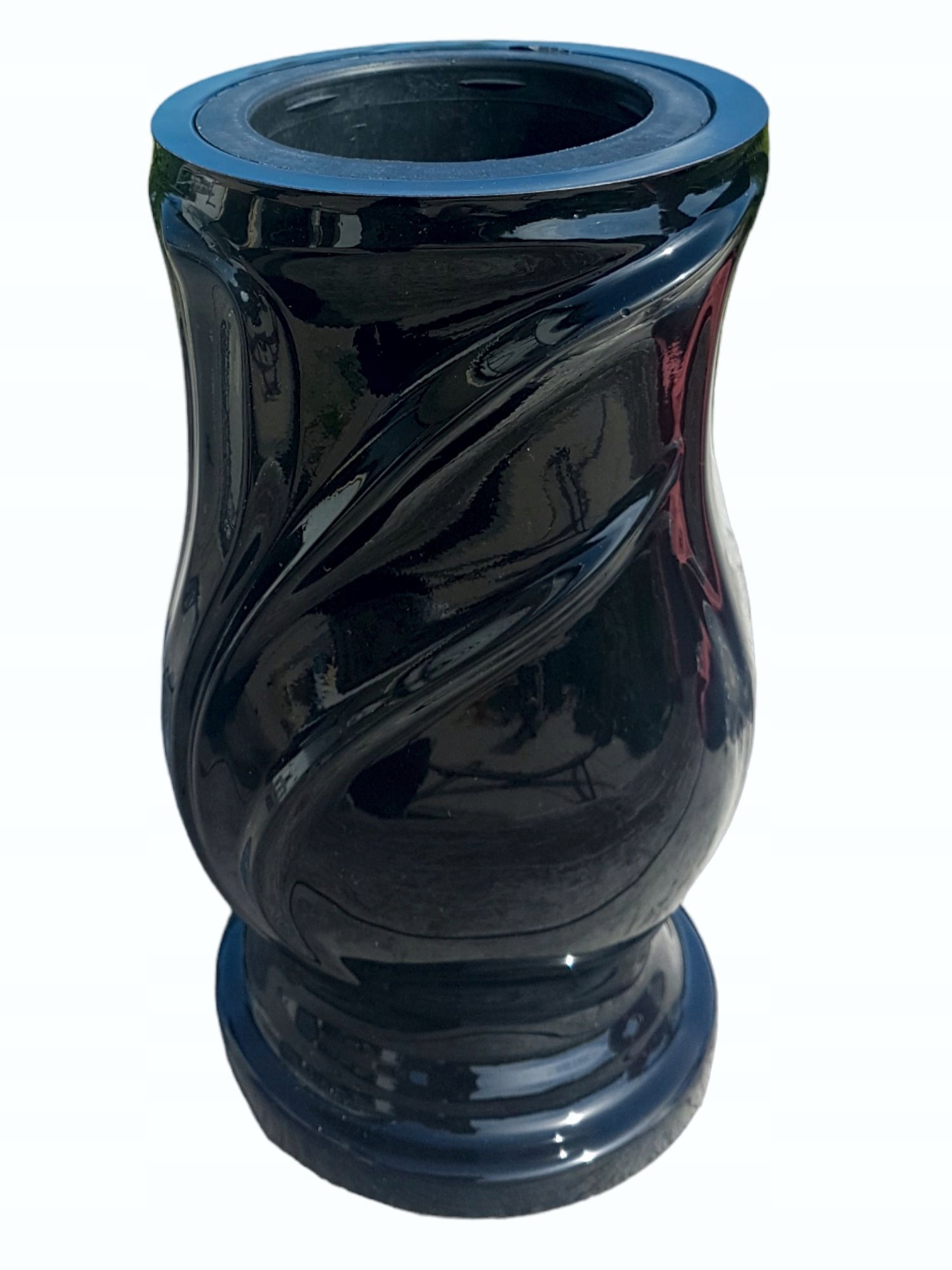 Wazon nagrobny można dodatkowo przykleić silikonem lub klejem kamieniarskim do płyty nagrobkowej.