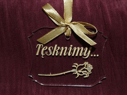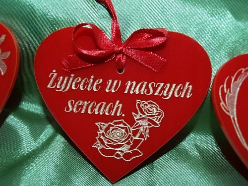Dedykacja i grafika jest grawerowana a następnie malowana . Każda zawieszka ma wstążeczkę (kolor losowy), która umożliwia powieszenie np. na zniczu