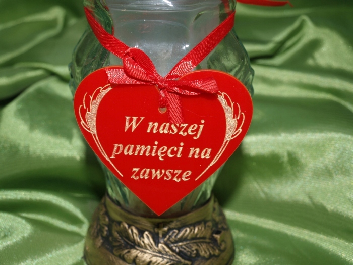 Dedykacja i grafika jest grawerowana a następnie malowana . Każda zawieszka ma wstążeczkę (kolor losowy), która umożliwia powieszenie np. na zniczu