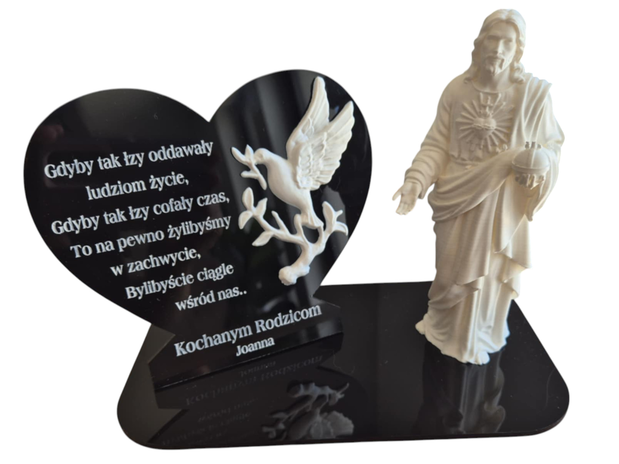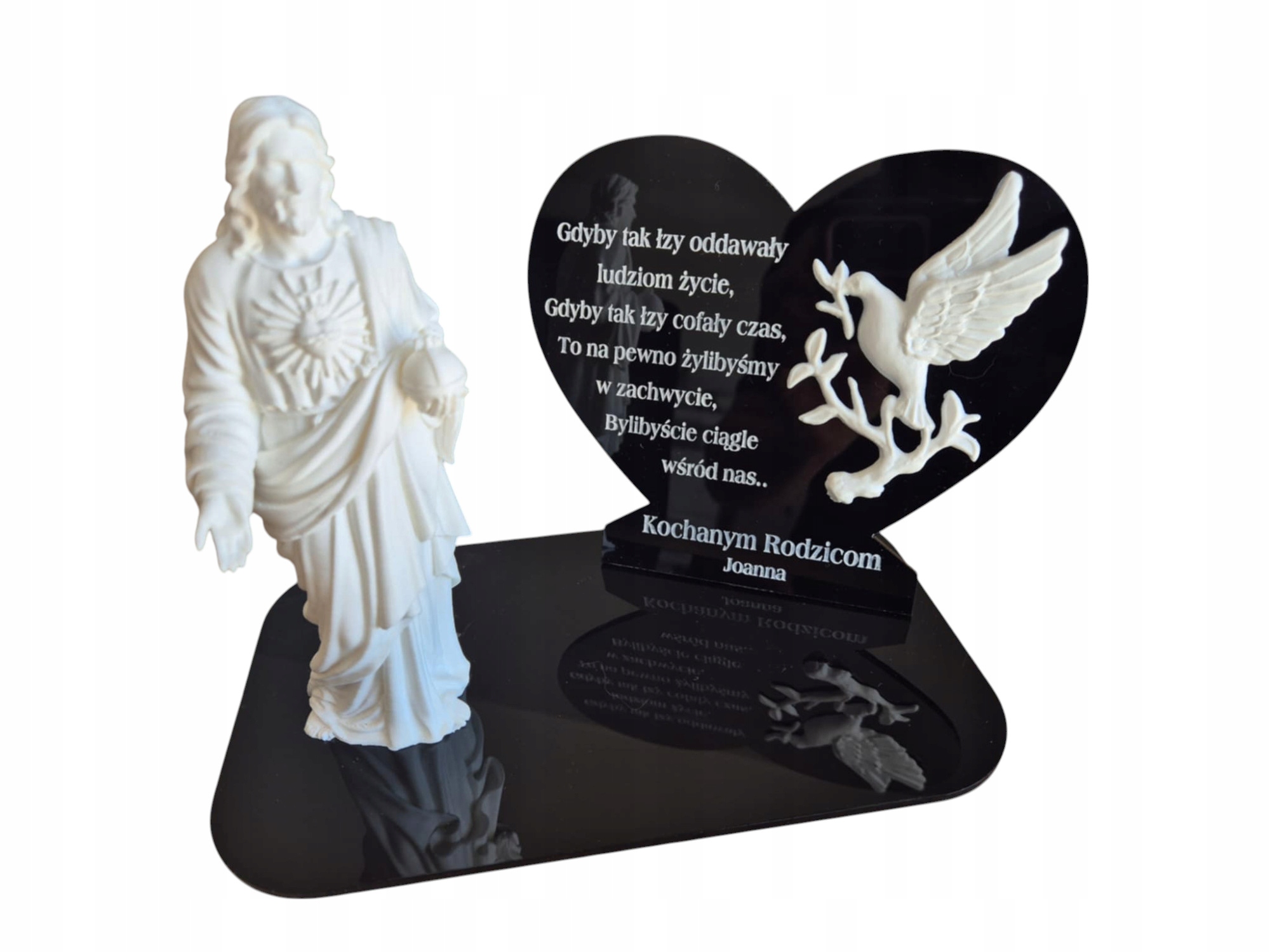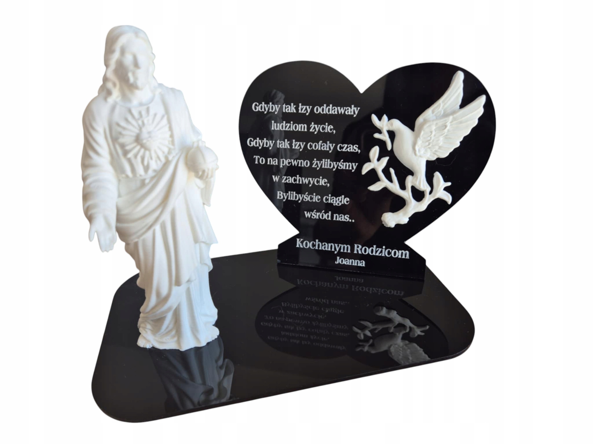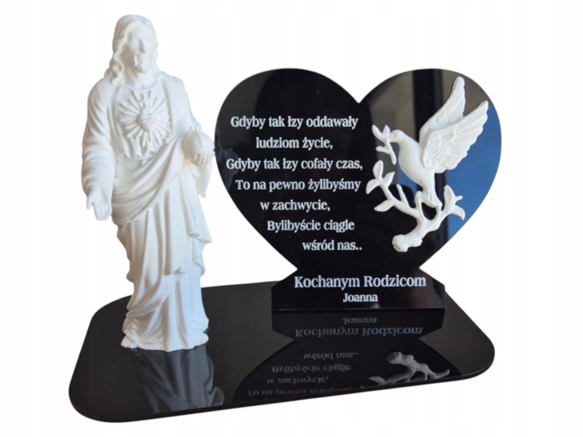 PODSTAWKA NA ZNICZ z dowolną dedykacją + figurka Matki Boskiej