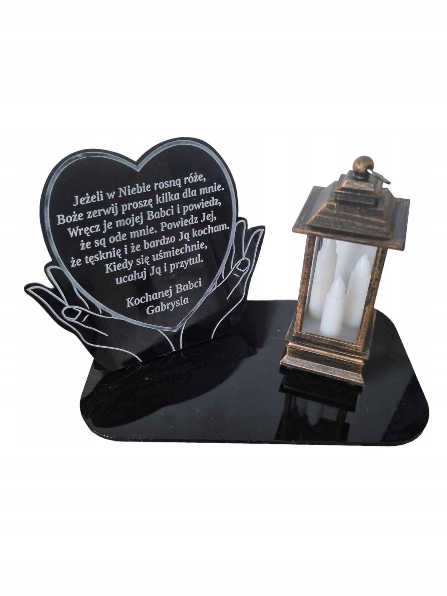 PODSTAWKA NA ZNICZ z dowolną dedykacją + ŚWIECZKA LED